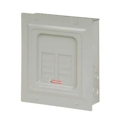 Feature: Aluminum bus construction provides lightweight, corrosion-resistant current paths. Business Impact: Easier handling during installation and improved long-term reliability in indoor environments. Application: Ideal for compact, serviceable panels in commercial applications where weight and corrosion resistance matter. Feature: 125 A amperage rating matched to 12 circuits across 6 spaces. Business Impact: Supports scalable service with ample headroom for growth while maintaining a compact footprint. Application: Suitable for small-to-medium residential and light commercial panels requiring reliable expandability. Feature: NEMA 1 metallic enclosure with 10 kAIC interrupt rating. Business Impact: Enhanced indoor durability and fault protection, reducing risk of enclosure damage and downtime. Application: Indoor dry-location installations in accordance with UL standards. Feature: Flush mounting and BR-series compatibility. Business Impact: Quick, clean installations with familiar breaker family, reducing wiring time and procurement complexity. Application: Retrofit or new-panel builds where conventional flush-mount loadcenters are preferred. Feature: Ground bar included; cover not included. Business Impact: Streamlines grounding and reduces additional part counts; minimal risk of misfit accessories on site. Application: Standard electrical assemblies where cover retention is managed separately, keeping options flexible for customer needs. Feature: 120/240V single-phase, #14-1 AWG Cu/Al wiring. Business Impact: Broad wiring compatibility supports common residential and light commercial circuits, lowering commissioning time. Application: Typical branch circuits and feeders in small panel boards.