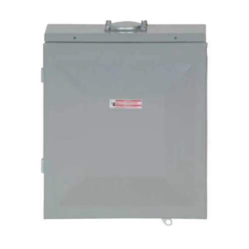 Yes. The enclosure is NEMA 3R rated with a metallic enclosure and cover included, providing weather resistance for outdoor or semi-outdoor environments. This makes it suitable for exterior electrical service entrances, equipment rooms, or protected outdoor locations where weather exposure is a consideration.