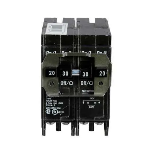 Feature → Business Impact → Application: Four-pole, common trip design coordinates protection across all poles, reducing the risk of partial failures and improving panel reliability in automated systems. Application: BR Loadcenters and machine control panels where coordinated switching is critical for safe startup and shutdown. Feature → Business Impact → Application: Amperage rating of (2) 50 A and (2) 30 A enables mixed circuit protection in a single device, optimizing space and simplifying inventory in industrial panels. Application: Mixed-load panels and motor control centers demanding versatile protection without added components. Feature → Business Impact → Application: 120/240 V AC operation provides flexibility for dual-voltage circuits, simplifying design references and stock requirements. Application: Residential, commercial, and light industrial automation panels. Feature → Business Impact → Application: 10 kAIC interrupt rating delivers fast fault clearance, limiting conductor damage and downstream equipment exposure. Application: Short-circuit events in high-demand control circuits. Feature → Business Impact → Application: UL 489 certification and W-C375 compliance support regulatory alignment and audit readiness. Application: Compliance-heavy manufacturing environments. Feature → Business Impact → Application: Compatibility with Type BR Loadcenters and 1-Inch quad architectures reduces wiring complexity and accelerates installation. Application: Panel builders seeking scalable protection for evolving lineups.