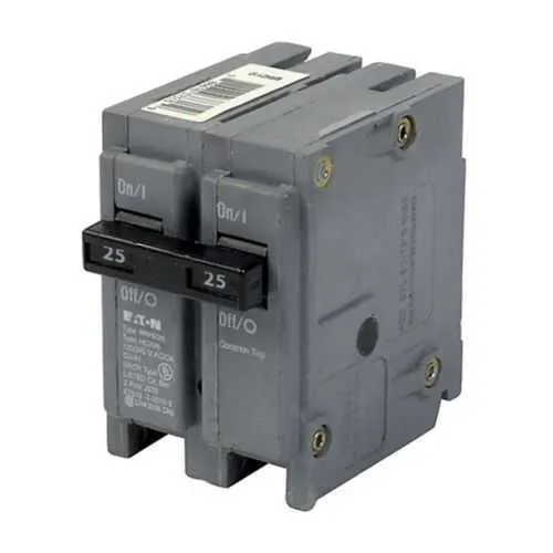 Plug-on mounting and the BR form factor enable rapid installation and reduced field wiring errors, improving panel assembly efficiency and consistency. This directly lowers labor costs and accelerates project timelines, especially in retrofit projects where space and access are limited. The common breaker trip across two poles delivers coordinated protection for multi-wire circuits, reducing the risk of nuisance trips and improving overall system reliability in residential and light commercial panels. With a 25 A rating and 22 kAIC interrupt capacity, the BRH225 supports typical branch circuits while delivering fast fault clearance, enhancing equipment protection and reducing downtime in critical installations. Compliance with UL 490 and Federal Specifications W-C376 ensures code alignment and procurement confidence, while catalog options for HACR and high-magnetic settings expand protection for HVAC and motor loads. Compatibility with Type BR Loadcenters and standard #14-4 AWG Cu/Al wiring streamline both new installations and upgrades, minimizing changeouts and simplifying stocking for distributors and contractors. These characteristics combine to deliver better reliability, lower lifecycle costs, and predictable performance across industrial and commercial electrical protection schemes.