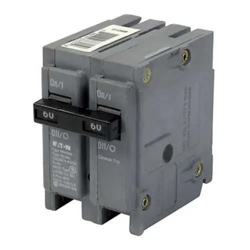 BRH260 is a Type BR 1-Inch plug-on circuit breaker designed for use in Eaton Type BR Loadcenters. It is a two-pole unit rated at 60 A with a common-trip design, enabling straightforward replacement in standard panels. This compatibility reduces field wiring changes and accelerates panel upgrades, especially during retrofits where space and layout are fixed.