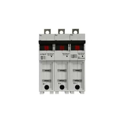 To install the CCPB-3-50CF, verify panel space and ensure a three-pole enclosure supports a Class CF disconnect. Connect each phase to the corresponding input terminals, secure with the Lock-On feature, and confirm finger-safe wiring. Ensure the 600 V rating aligns with your system voltage and that the device is properly coordinated with the surrounding protective devices to meet local codes.