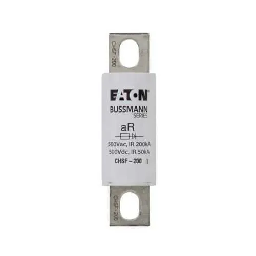 CHSF-200 Eaton: Eaton Bussmann series CHSF high speed fuse, 500 Vac, 500 Vdc, 200A, 200 kAIC, Non Indicating, High speed fuse, Bolt-on