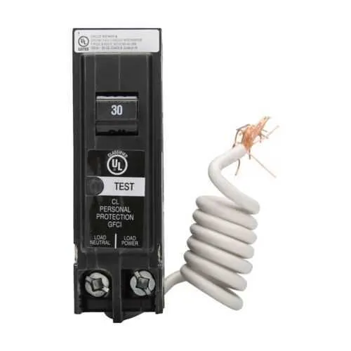 CLGF130 Eaton: Eaton Classified 1" GFCI circuit breaker,Ground fault circuit breaker,30 A,10 kAIC,Single-pole,120/240 V,CLGF,Trip-to-center,Plug-on,#14-8 AWG,Ground fault circuit interrupter,GFI