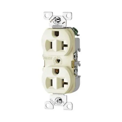 CR20A Eaton: Eaton commercial specification grade duplex receptacle, #14-10 AWG, 20A, Commercial, Flush, 125V, Side wire, Almond, Brass, High-impact nylon, PVC, 5-20R, Duplex, Screw, PVC, Core pack