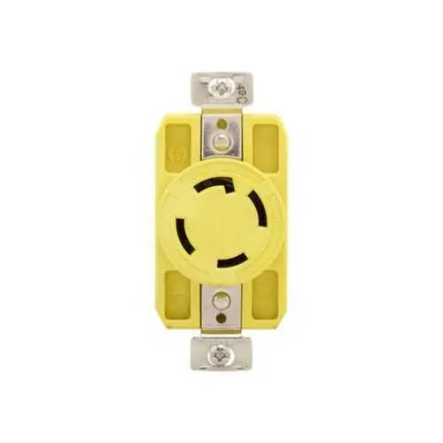 This is a three-pole, four-wire L14-30 locking receptacle rated at 30A and 125/250V. It is commonly used to power industrial equipment and panels requiring a locking connection to prevent accidental disconnections, especially in automation systems, motors, and heavy-duty equipment that rely on stable, three-phase configurations.