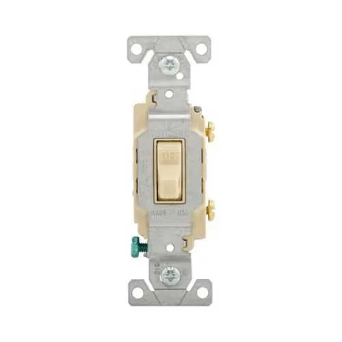 CS115V Eaton: Eaton commercial grade toggle switch, #14-10 AWG, 15A, Commercial, Flush, 120/277V, Side wire, Screw, Ivory, Load type: Motor Control, Fan, LED, Incandescent, ELV, MLV, CFL, Flourescent, Halogen, Single-Pole, Single-Pole, Brass, PVC