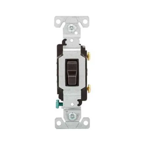 CS120B Eaton: Eaton commercial grade toggle switch, #14-10 AWG, 20A, Commercial, Flush, 120/277V, Side wire, Screw, Brown, Load type: Motor Control, Fan, LED, Incandescent, ELV, MLV, CFL, Flourescent, Halogen, Single-Pole, Single-Pole, Brass, PVC
