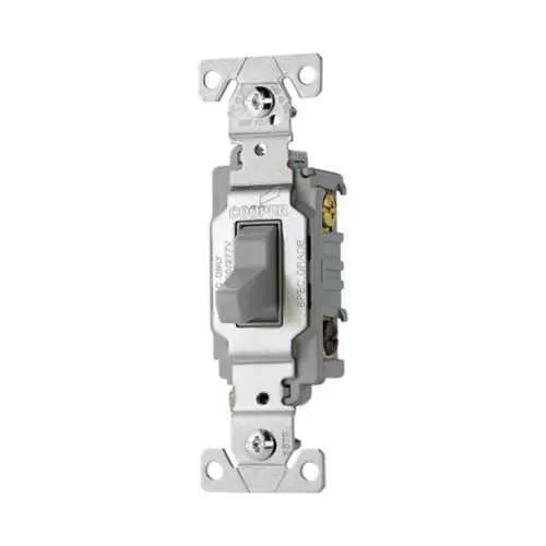 CS320GY Eaton: Eaton commercial grade toggle switch, #14-10 AWG, 20A, Commercial, Wall, 120/277V, Side wire, Screw, Gray, Three-Way, Copper alloy, Terminals: 0.031 in
