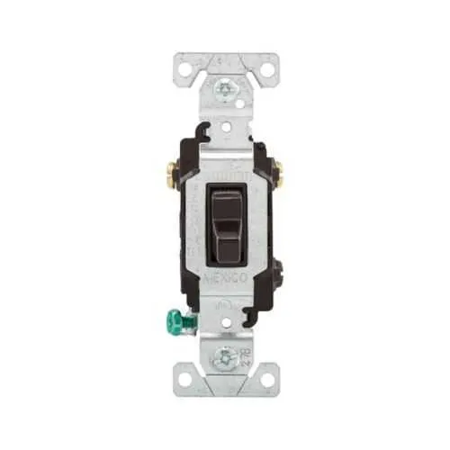 CSB315B Eaton: Eaton commercial grade toggle switch, #14-10 AWG, 15A, Commercial, Wall, 120/277V, Back and side wire, Screw, Brown, Three-Way, Brass, Terminals: 0.031 in