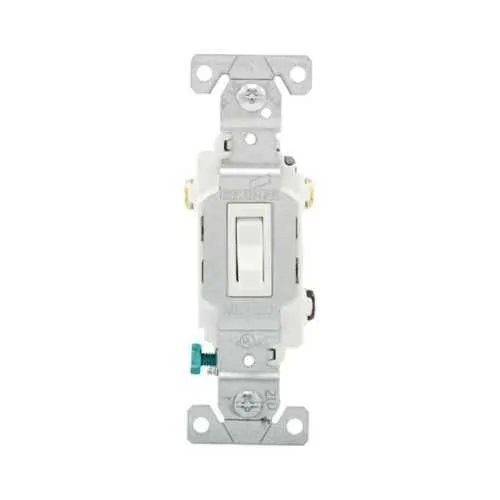 The Eaton CSB315STW-SP toggle switch is a reliable control device for commercial wiring projects. In the field, installers often contend with tight spaces, mixed wiring methods, and multi-location control challenges, which this switch helps mitigate with back and side wiring and secure screw terminals. It carries cULus Listed status along with NOM and Federal Specification Classification 6241 05, helping you meet essential regulatory requirements and maintain traceability. With a 15A, 120/277V rating in a three-way, single-pole configuration, it delivers versatile performance for offices, retail spaces, and light-industrial environments. The combination of a wall-mount design, brass terminals, and a rugged PVC body translates into faster installations, fewer call-backs, and improved lifecycle value for project portfolios.