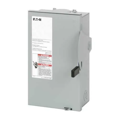 Eaton DG221NRB general duty cartridge fuse safety switch protects motor circuits in commercial and light industrial panels. It minimizes nuisance fuse trips and simplifies maintenance in dense electrical installations. UL Listed, NEC 230.62 barrier compliant, and a NEMA 3R enclosure ensure safe, durable operation in indoor and outdoor environments. Designed for general duty safety switching in control panels and distribution boards, it pairs with Class H fuses for reliable protection and reduced downtime. This combination supports faster installation, easier sourcing, and scalable protection across multiple jobs. With its robust build, you gain consistent performance across changing load profiles and environments.