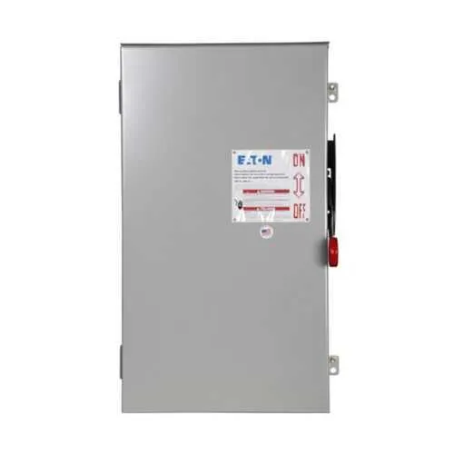 Eaton DC disconnect DH164URKN provides safe, reliable isolation of 600 VDC power in industrial installations. Downstream downtime and wiring errors are common pain points during upgrades, and this device is designed to simplify field wiring while delivering dependable performance. UL Listed and housed in a NEMA 3R enclosure with painted galvanized steel deliver outdoor durability and regulatory confidence, while the 200 A, single-pole, non-fusible design supports fast, predictable switching. Designed for long life in harsh environments, it integrates factory-installed neutral assemblies to streamline installation, reduce field labor, and improve system safety—delivering real value for data centers, solar, and industrial drives.