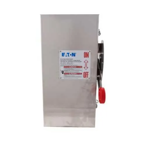 Eaton heavy duty fusible safety switch isolates 3-phase motor circuits in harsh industrial environments. Downtime and corrosion risk slow plants; this unit has a corrosion resistant 304 stainless enclosure that minimizes rust and maintenance. It carries UL Listed certification and NEMA 4X rating, ensuring safe operation in moist or dusty environments, even outdoors. For electrical protection and circuit control workloads, this switch lowers installation time and extends service life, delivering total cost of ownership benefits. Rated 30A, 240V with three poles and four wires, it supports standard 1-3 horsepower motor loads. The fusible design with neutral provides quick disconnection and protection that aligns with modern codes.