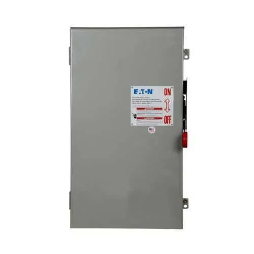 Three-pole four-wire construction provides direct, clean control of three-phase feeders, reducing mis-wiring and enabling precise de-energization during maintenance. The DH324NRKLLV delivers predictable operating sequences in heavy commercial and industrial buildings, supporting reliable startup and shutdown of motors and equipment. This configuration is particularly valuable in facilities with mixed voltage levels and evolving protection schemes, where a single switch must coordinate with upstream disconnects while maintaining safe neutrals. Integrated cartridge fuse protection offers fast isolation under fault conditions, lowering arc-flash exposure and simplifying compliance with lockout/tagout requirements. The neutral connection ensures correct load balancing and safe fault clearing across four-wire systems, reducing overheating risks on feeders and simplifying protection coordination with downstream devices. In practice, engineers see fewer nuisance trips and quicker fault diagnosis when a single device handles both switching and overcurrent protection for complex loads. An outdoor-ready profile is provided by the NEMA 3R enclosure and painted galvanized steel, which withstands rain, dust, and temperature swings common in industrial environments. This rugged construction supports long service life with minimal maintenance, even in exposed installations. The enclosure's robust dimensions also simplify mounting and retrofits in existing switchgear rooms. With neutral, enhanced visible blade, and clearly marked line/load labels, the DH324NRKLLV improves safety during servicing and commissioning. The visible blade reduces guesswork when verifying circuit status, while line/load labels guide electricians through correct connection points. Together, these features speed installations, inspections, and preventive maintenance without compromising reliability. Wire-size compatibility of #6 AWG to 250 kcmil Cu/Al accommodates large feeders, reducing the need for awkward splices or bootleg connections. The 30 in depth, 18 in width, and 9.5 in height footprint, combined with a 52 lb weight, provide a predictable mounting envelope for new builds and retrofits. The device is designed for 200 A service with 240 V nominal (600 V max). Warranty coverage aligns with Eaton policy (one year from installation or eighteen months from shipment), reinforcing procurement confidence. UL Listing confirms compliance with relevant electrical safety standards, and the heavy-duty designation reflects suitability for demanding applications in industrial plants. Overall, the DH324NRKLLV delivers measurable improvements in uptime, safety, and maintenance efficiency.