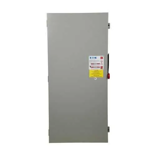 Eaton heavy duty fusible safety switch safely interrupts power in industrial control panels and service entrances. When large motors start or fault currents strike, space-constrained environments demand rugged protection that keeps downtime to a minimum. UL Listed certification, NEC 230.62 barrier compliance, and a NEMA 1 painted steel enclosure provide regulatory alignment and reliable enclosure protection. This DH366FGK model delivers 600 A capacity and supports up to 200, 400, or 500 hp at 240, 480, and 600 V, with Neutral Kit compatibility for service entrance use. Designed for installation efficiency and long-term maintenance savings, it aligns with typical control panels and motor feeders while offering straightforward serviceability.