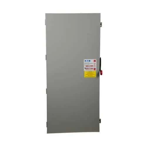 Feature: 800A amperage rating, 600V voltage rating, three-pole, four-wire configuration with fusible neutral. Business Impact: Enables high-capacity protection for demanding motor loads and feeders while maintaining system stability and surge resistance. Application: Suitable for large MCCs and critical industrial feeders where reliability and quick fuse replacement are essential. Feature: NEMA 1 painted steel enclosure. Business Impact: Provides indoor protection against dust and incidental contact, reducing corrosion and maintenance in standard plant environments. Application: Ideal for indoor control rooms, switchgear cabinets, and service bays where durability matters. Feature: Class L fuse provision. Business Impact: Delivers precise coordination and predictable fuse performance, lowering nuisance trips and improving system uptime. Application: Effective for controlled protection of motors and power circuits with defined dulling and shutoff characteristics. Feature: UL Listed with NEC compliant barrier. Business Impact: Strengthens compliance posture and simplifies regulatory audits, reducing project risk. Application: Essential for facilities with stringent electrical codes and safety requirements. Feature: 500 hp maximum at 480/600V. Business Impact: Supports heavy motor applications without oversizing, optimizing total lifecycle costs. Application: Suitable for high-horsepower drives in manufacturing lines and process equipment. Additional: 57.5 in length, 27.5 in width, 12.38 in height; 175 lb weight; 3-pole, 4-wire neutral configuration; Catalog Number DH367NGK; 782113639260 UPC. Warranty: One year from installation or eighteen months from shipment, whichever occurs first. Installation compatibility with standard Eaton and third-party control systems.
