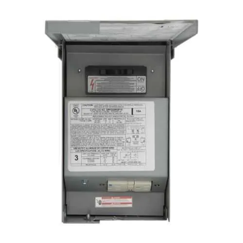 Fused pullout design enables quick fuse replacement without exposing downstream circuitry to the elements. This reduces maintenance time and minimizes downtime during service windows, improving equipment availability. It is ideal for outdoor HVAC disconnects on rooftops and outdoor condensers, where weather exposure and tamper risks are highest. 60A amperage rating supports standard HVAC loads, with 3 hp at 120 V and 10 hp at 240 V. This helps prevent nuisance tripping while allowing efficient system startup and operation. It suits mid-size commercial rooftop units and outdoor condensers that require solid, code-compliant disconnects. 10 kAIC interrupt rating delivers high fault current protection, preserving downstream equipment. That translates to reduced risk of transformer and wiring damage during faults and easier compliance with utility requirements. This is particularly beneficial for outdoor installations where fault energy can be higher, such as near service entrances or in crowded mechanical rooms. 15 A weather/tamper-resistant ground fault receptacle ensures safe, code-compliant outlets for maintenance gear and test equipment. The safety feature reduces shock risk and supports code compliance for outdoor work. Use cases include servicing fans, sensors, and control devices without compromising enclosure integrity. Enclosure is NEMA 3R galvanized steel, providing rain, dust, and corrosion protection. This extends service life and minimizes weather-induced downtime for outdoor installations and industrial environments. Wire size compatibility with #14-3 Cu/Al simplifies wiring in field assemblies. Color and form factor help comply with color-coded systems, while the compact footprint supports panel integration and reduces mounting requirements.