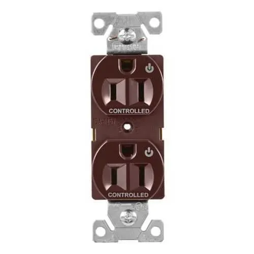 EZ5262CDB Eaton: Eaton EZLink modular duplex receptacle, 15 A, 125 Vac, 60 Hz, dual controlled, NEMA 5-15R, three-wire, brown