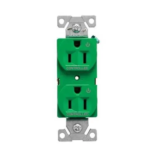 EZ5262CDGN Eaton: Eaton EZLink modular duplex receptacle, 15 A, 125 Vac, 60 Hz, dual controlled, NEMA 5-15R, three-wire, green