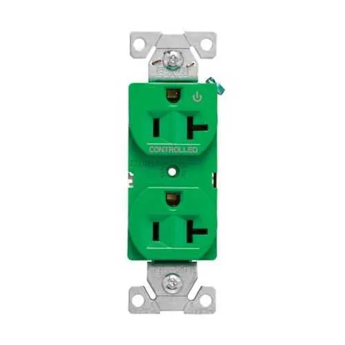 EZ5362CHGN Eaton: Eaton EZLink modular duplex receptacle, 20 A, 125 Vac, 60 Hz, half controlled, NEMA 5-20R, three-wire, green