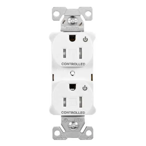 EZTR5262CDW Eaton: Eaton EZLink modular duplex receptacle, 15 A, 125 Vac, 60 Hz, tamper-resistant, dual controlled, NEMA 5-15R, three-wire, white