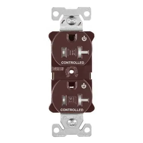 EZTR5362CDB Eaton: Eaton EZLink modular duplex receptacle, 20 A, 125 Vac, 60 Hz, tamper-resistant, dual controlled, NEMA 5-20R, three-wire, brown
