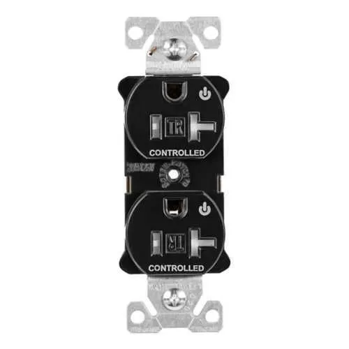 EZTR5362CDBK Eaton: Eaton EZLink modular duplex receptacle, 20 A, 125 Vac, 60 Hz, tamper-resistant, dual controlled, NEMA 5-20R, three-wire, black
