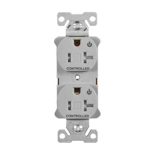 EZTR5362CDGY Eaton: Eaton EZLink modular duplex receptacle, 20 A, 125 Vac, 60 Hz, tamper-resistant, dual controlled, NEMA 5-20R, three-wire, gray