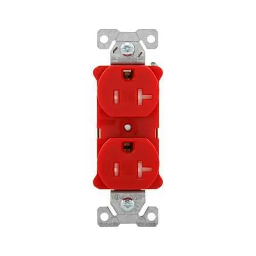 Designed for durability in daily use, the 20A 125V rating supports reliable operation under standard loads. The tamper-resistant feature reduces wear on the contacts during repeated plugging and unplugging, while the red color aids quick re-identification after maintenance. In facilities with high turnover, this receptacle minimizes downtime and reduces replacement parts.