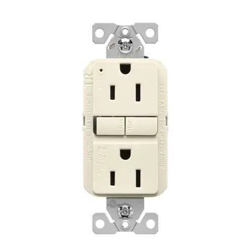 EZTRGF15LA is rated for 15 amps and 125 volts at 60 Hz, with a three-wire configuration. It is tamper‑resistant and available in light almond. The device is cULus Listed NOM, aligning with North American safety standards for modular GFCI protection in control panels and automation enclosures.