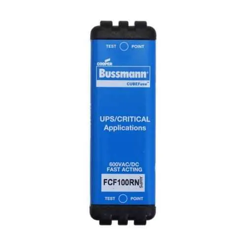 FCF100RN Eaton: Eaton Bussmann Series UL Class CF, FCF fuse, fast-acting, single-element cube fuse, 100 A, non-idicating fuse, interrupting rating of 50 kA at 600 Vdc and 200 kA at 600 Vac
