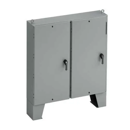 Ground mounting with built-in legs and ground studs provides a secure, code-compliant installation, reducing movement during wiring and testing while cutting commissioning time and labor costs. The 72-inch height, 77.75-inch width, and 18-inch depth create a spacious interior that eases component placement and future expansion, improving overall system reliability. The carbon steel shell with 12-gauge walls and ANSI 61 gray painted finish delivers rugged durability in harsh environments, aiding long-term corrosion resistance and simplifying maintenance planning. UL 508A and CSA C22.2 certifications, alongside NEMA ratings of 12 and 4, ensure compliance and safe operation in indoor and outdoor spaces, supporting facility standards and risk management objectives. Features such as a hinged cover, 3-point latching handle, and ground provisions enable secure access, faster service, and enhanced operator safety. With 12 bottom knockouts and ground mount legs, conduit routing remains flexible, while the defeater padlock provision allows secure, controlled access in line with security policies. The gasket is oil-resistant to maintain enclosure integrity in environments with lubricants or industrial fluids, reducing the risk of moisture ingress and preserve electrical protection over time. Overall, the FD727718-4FS balances industry-leading protection with practical installation advantages, helping facilities meet uptime targets, regulatory expectations, and cost-of-ownership objectives.
