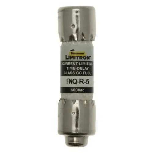 FNQ-R-5 fuse provides fast current-limiting protection for small control circuits and transformers. Designed to minimize startup delays and nuisance trips in industrial panels, it helps maintain uptime without compromising safety. CE marked and RoHS compliant, FNQ-R-5 offers a 200 kAIC interrupt rating and is a Class CC, time-delay current-limiting fuse. With ferrule-to-ferrule connections and a compact profile, this Bussmann Series device supports reliable line protection in industrial control, small transformers, and branch circuits, delivering consistent performance and simplified procurement.