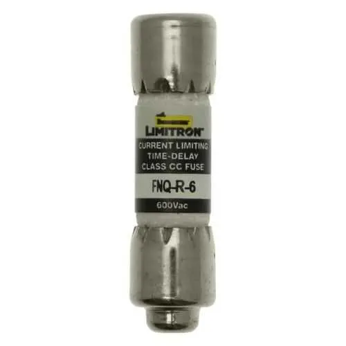 The FNQ-R-6 is a 600 V rated Class CC time-delay fuse with ferrule-end terminations, designed for industrial control panels and feeders. It supports standard ferrule wires and terminals commonly used in control cabinets, enabling straightforward installation and reliable connections without special adapters.