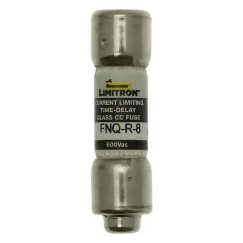 FNQ-R-8 Eaton: Eaton Bussmann Series Class CC fuse, FNQ, time-delay, dual-element current limiting fuse, 8 A, rejection style fuse, interrupting rating of 200kA at 600Vac