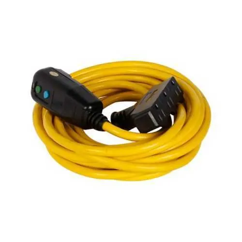 Yes. GFP11M4P9 features a UL Listed rating and a NEMA 3R watertight enclosure, specifically designed for outdoor and wet-area applications. The polycarbonate housing resists impact and weather exposure, while the 25' #12 AWG cord provides safe reach to distant tools. It is suitable for construction sites, outdoor events, and maintenance tasks where moisture is present.
