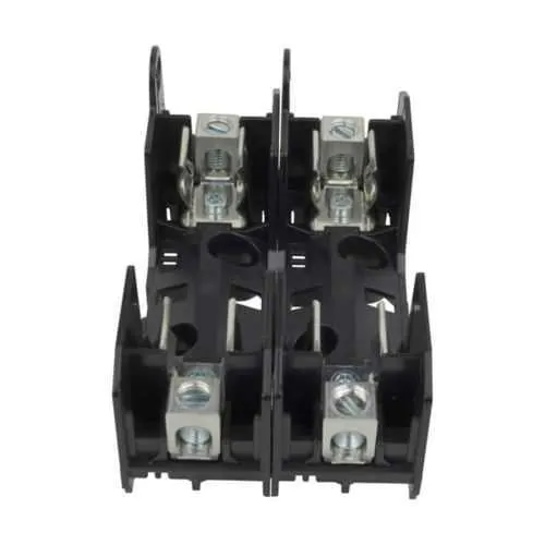 The HM25060-2CR accepts fuses from Eaton's Bussmann HM series designed for 35–60 A, 250 V applications. It provides a two-pole, high-current protection platform with a 10 kAIC short-circuit rating. Always confirm compatibility with HM-series cartridges and ensure the device rating matches the protected circuit requirements.