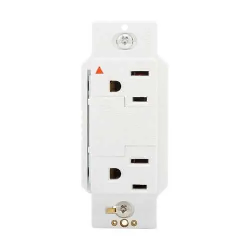 The IG1208W is designed for wall flush mounting with standard 6 inch #12 AWG leads. It wires with three conductors (hot, neutral, ground) to yield a two-receptacle duplex, 5-15R configuration. It supports straightforward retrofits in standard electrical boxes and aligns with common commercial installation practices, reducing field wiring time and ensuring reliable termination with solid strain relief.