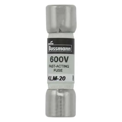 Eaton KLM-20 fuse is a fast-acting protection device for industrial power circuits and control panels. Engineers face recurring nuisance blows and challenging replacements that drive downtime and maintenance costs. It is RoHS compliant and CE-marked, with 600 Vac and 600 Vdc ratings, ensuring global regulatory alignment and safe operation across mixed AC/DC systems. The ferrule end connections and standard packaging simplify installation, stocking, and field service, delivering reliable protection with lower total cost of ownership for manufacturers and system integrators. Designed for easy cross-reference with Bussmann series catalogs, KLM-20 integrates smoothly into standard fuse blocks and protection schemes. It also reduces spare-part variety.