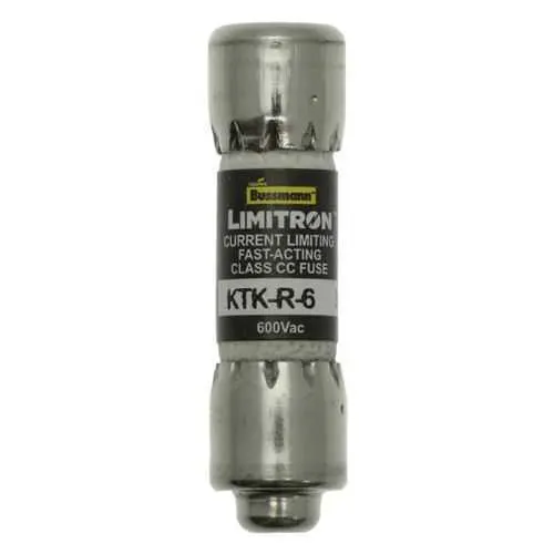 KTK-R-6 Eaton: Eaton Bussmann Series Class CC fuse, KTK-R, fast-acting, dual-element current limiting fuse, 6 Amp rejection style fuse, interrupting rating of 200kA at 600Vac