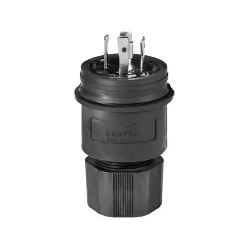 L1430PWBK Eaton: Eaton Arrow Hart watertight locking plug, #18-10 AWG, 30A, Industrial, 125/250V, Back wiring, Black, Steel, Watertight, L14-30, Three-pole, Four-wire, Santoprene, 0.43 to 1.15 in, IP67