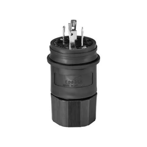 L1620PWBK Eaton: Eaton Arrow Hart watertight locking plug, #18-10 AWG, 20A, Industrial, 480V, Back wiring, Black, Steel, Watertight, L16-20, Three-pole, Four-wire, Santoprene, 0.36 to 0.84 in, IP67