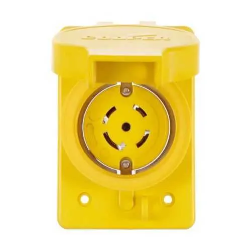 This receptacle is a 30A, 120/208 V, four-pole L21-30 locking device. It supports five conductors including grounding, providing a robust solution for three-phase industrial loads. The locking design ensures a secure connection in environments with vibration or movement, reducing arc risk and downtime.
