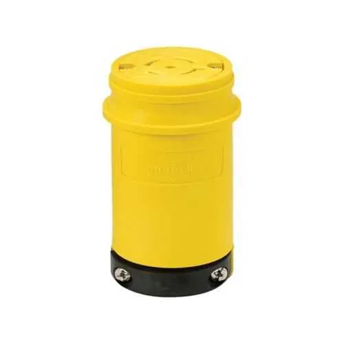 L2220CW Eaton: Eaton Arrow Hart watertight locking connector, #18-10 AWG, 20A, Industrial, 277/480V, Back wiring, Yellow, Steel, Watertight, L22-20, Four-pole, Five-wire, Santoprene thermoplastic elastomeric, 0.36 to 0.84 in, IP67