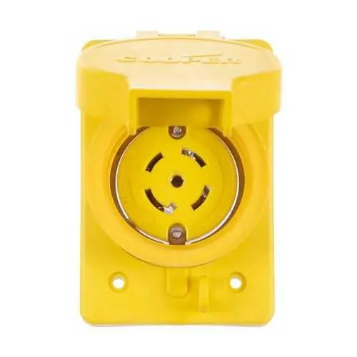 The Eaton Arrow Hart watertight locking receptacle is designed to provide rugged, reliable power connections for industrial equipment and outdoor enclosures. Its back-wiring, four-pole design simplifies field termination and reduces installation time, helping minimize downtime in harsh environments. This receptacle carries RoHS compliance and NOM cULus listing, with environmental ratings including IP66 and NEMA 4X to withstand washdowns, dust, and moisture. By combining a glass-filled nylon body with a nickel-plated bronze contact system, it delivers durable performance across 277/480 V three-phase systems. Industrial-grade and lockable, it supports 30 A circuits and remains compatible with #14-8 AWG wiring for scalable, code-compliant power distribution.