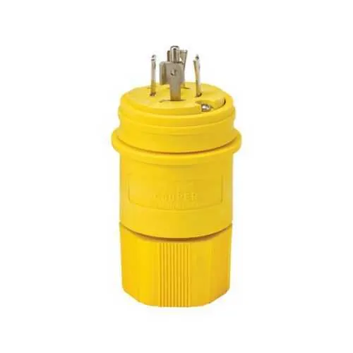 The plug is rated for 20A, 347/600V, and features a four-pole, five-wire arrangement with grounding. This supports three-phase equipment and motor loads typical in industrial automation, delivering reliable current handling, safe termination, and compatibility with heavy-duty drives.