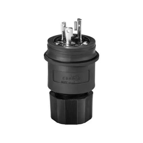 Eaton L530PWBK watertight locking plug is designed for industrial power connections in harsh environments. These conditions often challenge safety and reliability, leading to downtime and costly maintenance. It carries IP67 protection along with NEMA 4X compatibility and RoHS compliance, plus cULus Listing for added assurance. For procurement and field service, this rugged solution supports back wiring with #18-10 AWG cables, delivering safer, faster, and code-compliant connections in demanding facilities.