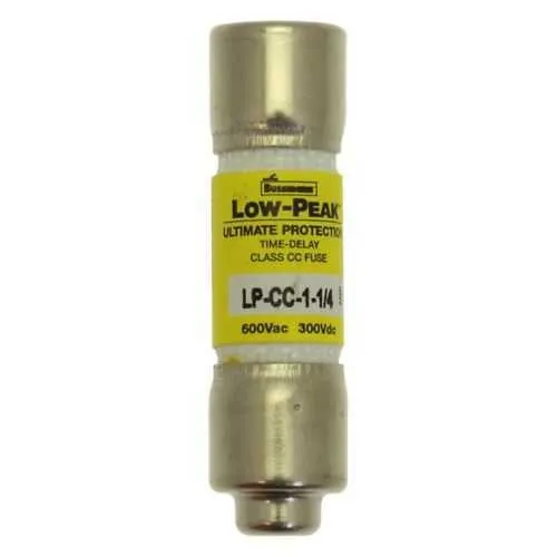 LP-CC-1-1/4 Eaton: Eaton Bussmann Series Class CC fuse, LP-CC, time-delay, dual-element current limiting fuse, 1.25 A, rejection style fuse, interrupting rating of 20 kA at 300 Vdc and 200 kA at 600 Vac