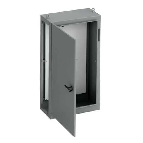Feature: Large footprint and heavy-duty construction (84 in height, 78 in width, 24 in depth; 907.7 lb; 12-gauge carbon steel) → Business Impact: Provides robust physical protection for large control panels and disconnection devices, reducing the risk of equipment damage in demanding environments. Application: Ideal for factory floors and switchgear rooms requiring durable, long-life enclosures. Feature: Ground mounting with no mounting provisions inside the unit → Business Impact: Simplifies installation on a solid base while clarifying mounting requirements for integrators, reducing install time and alignment issues. Application: Suitable for permanent installations in production lines with limited wall space. Feature: Large double-door hinged cover with 3-point latching and defeater padlock provisions → Business Impact: Improves user access control, security, and safety during routine maintenance, lowering the chance of accidental openings. Application: Critical when masking sensitive control circuits in high-traffic areas. Feature: Oil-resistant gasket and ANSI 61 gray painted finish → Business Impact: Enhances environmental resistance to oils and dust, extending enclosure life and reducing replacement costs. Application: Dirty or oily shop floors and processing environments. Feature: NEMA 12, UL 508A, and CSA C22.2 compliant → Business Impact: Ensures regulatory compliance and reliable electrical protection, minimizing risk during audits. Application: Manufacturing facilities and process control rooms requiring formal certifications. Feature: Ground mounting compatibility with standard 24 in depth → Business Impact: Aligns with common facility footprints and simplifies integration with existing equipment racks. Application: Industrial plants seeking scalable, modular protection for control cabinets.